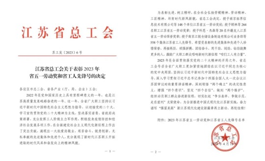 近日,江蘇省總工會印發(fā)《江蘇省總工會關(guān)于表彰2023年省五一勞動獎和省工人先鋒號的決定》,銀寶集團榮獲“江蘇省五一勞動獎狀”。